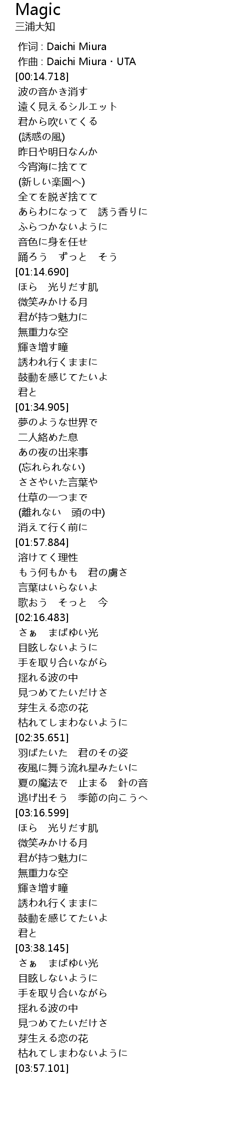 | [00:01.000] | zuò qǔ : Daichi Miura UTA |