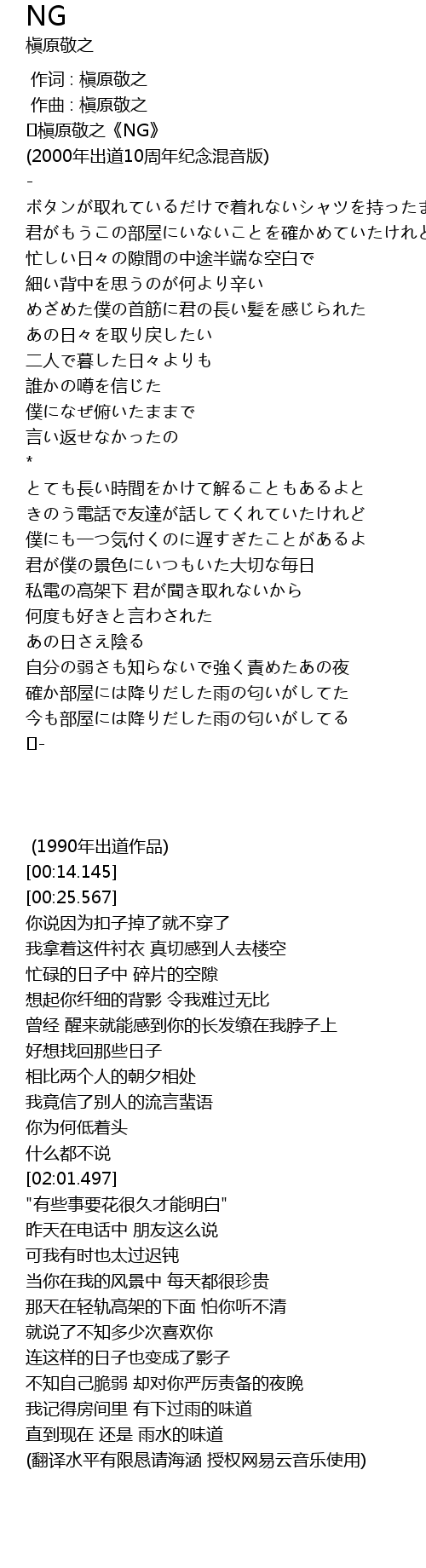 | [00:02.804] | ♪槇原敬之《NG》 |