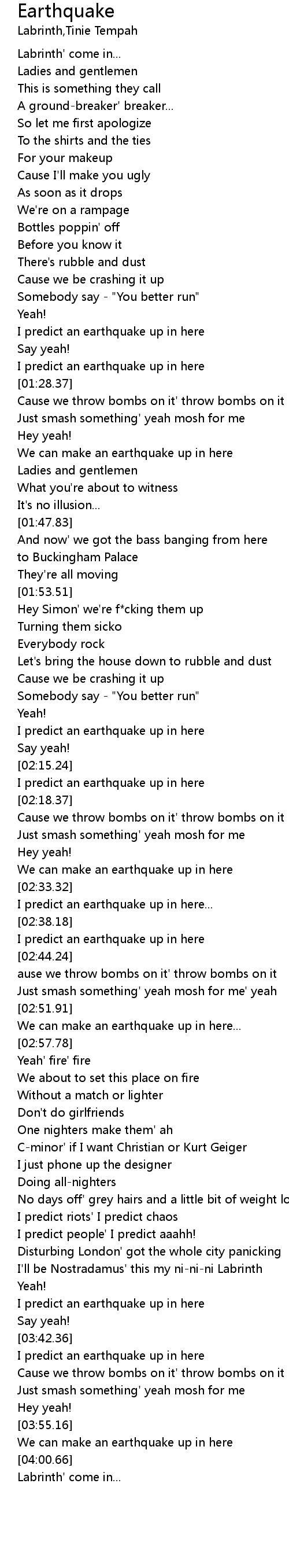 I predict an earthquake up in here |