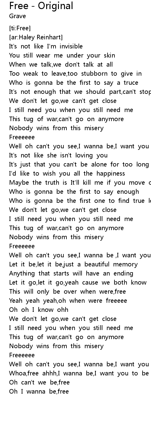 [02:22.26] Well oh can't you see,I wanna be ,I want you to be,free
