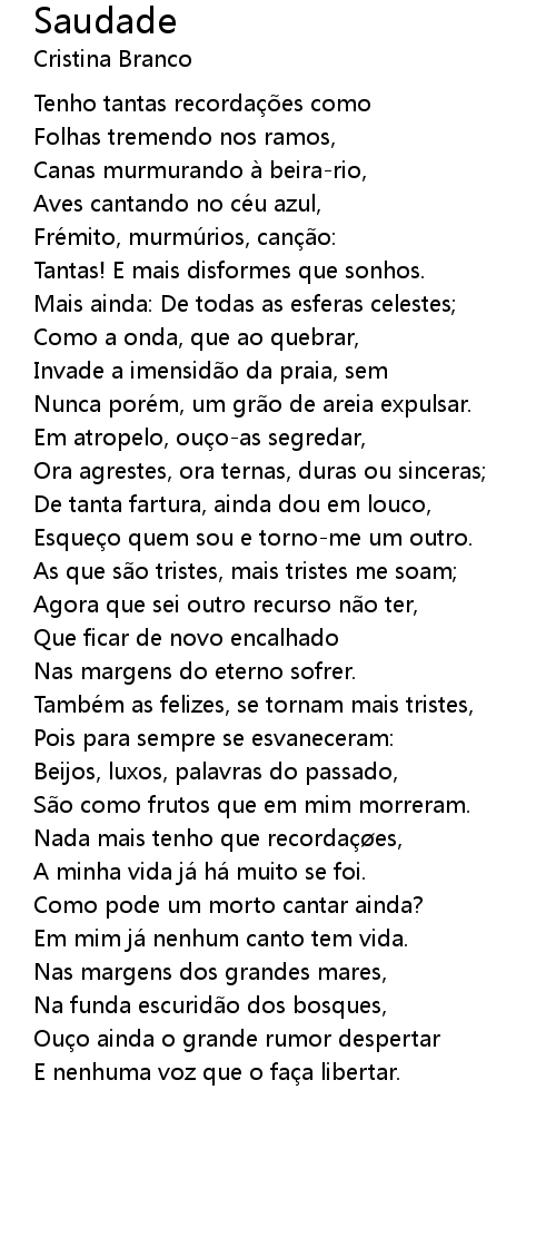 | Em mim ja nenhum canto tem vida. | |