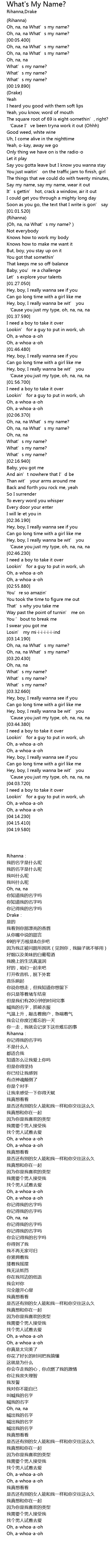 | [00:01.320] | Oh, na, na What’s my name? |