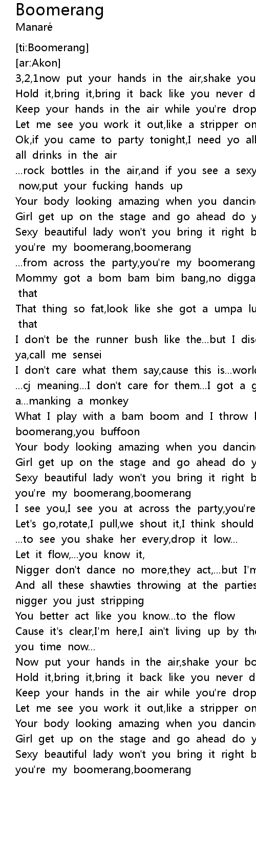 [02:56.279] Sexy beautiful lady won't you bring it right back,...lady you're my boomerang,boomerang