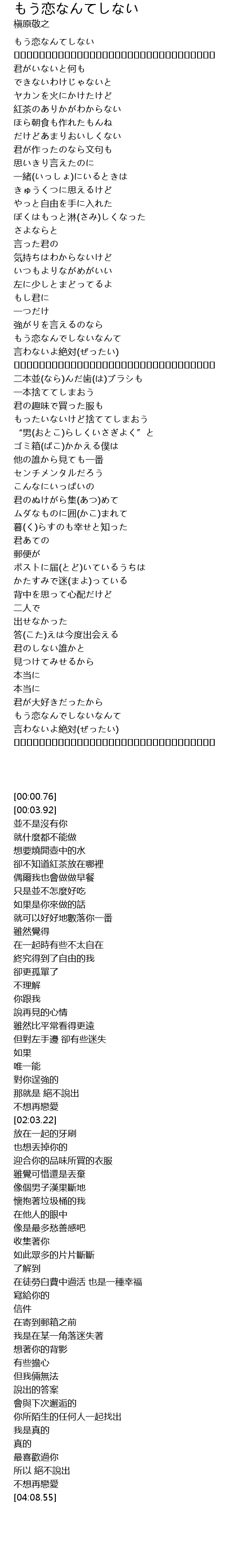 | [00:00.76] | もう恋なんてしない |