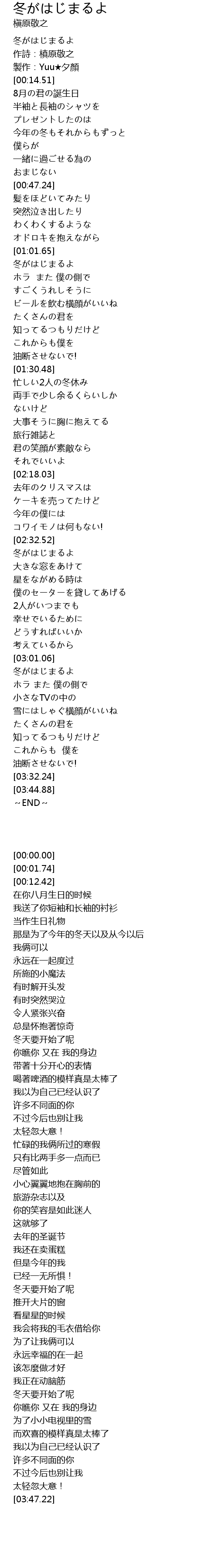 | [00:33.21] | 今年の冬もそれからもずっと |