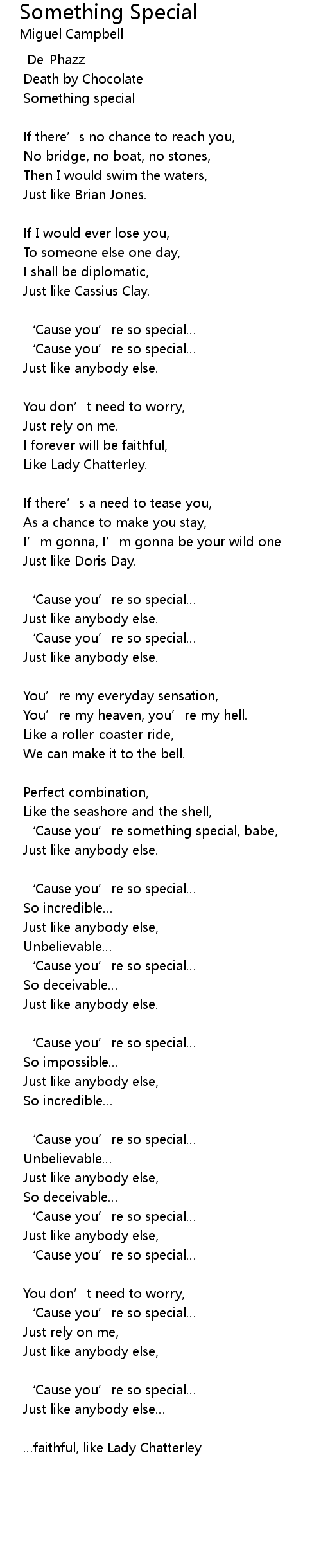 | ' Cause you' re something special, babe, | |
