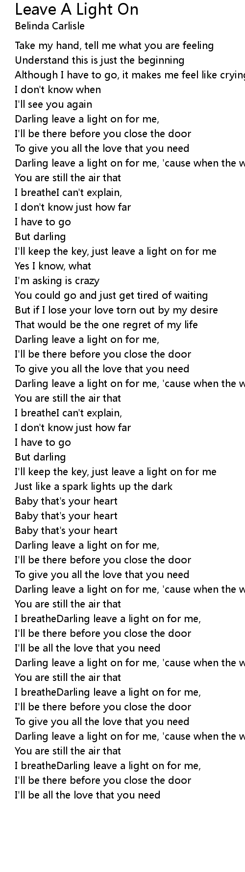 I breatheDarling leave a light on for me, |