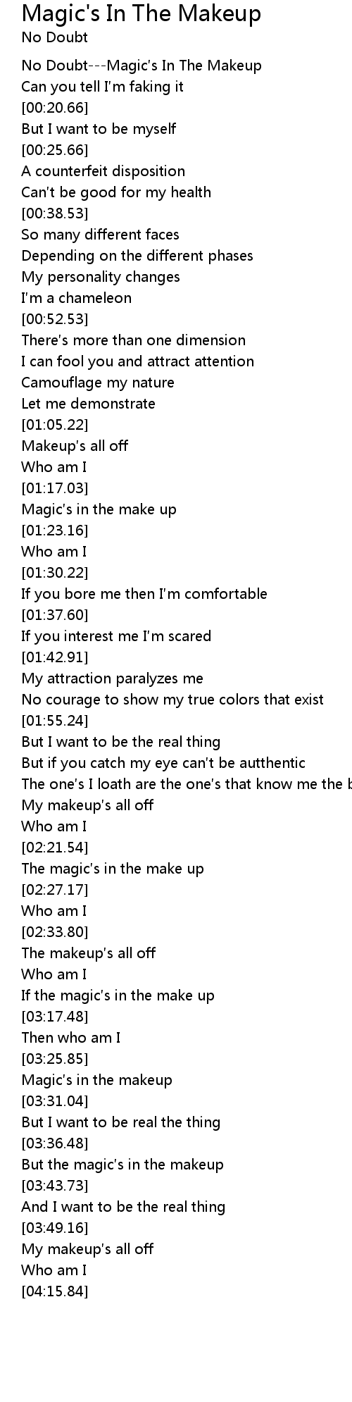 | [00:02.30] | No DoubtMagic s In The Makeup |