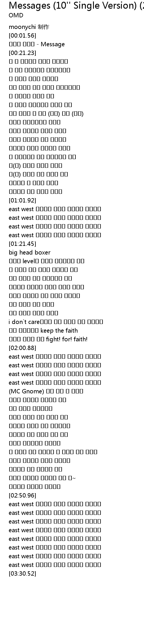 | [03:20.60] | east west 동서남북 어디를 가더라도 당당하게 |