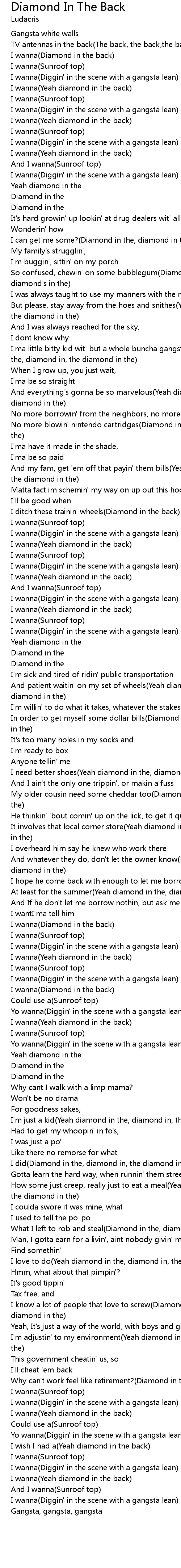 I'ma little bitty kid wit' but a whole buncha gangsta wishes(Yeah diamond in the, diamond in, the diamond in the) |