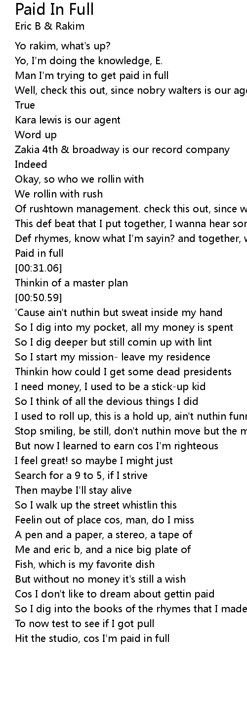 Hit the studio, cos I'm paid in full |