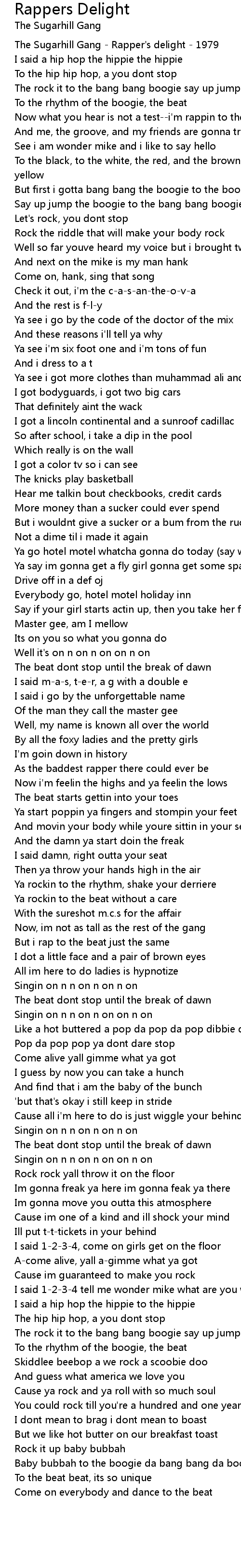 The hip hip hop, a you dont stop |