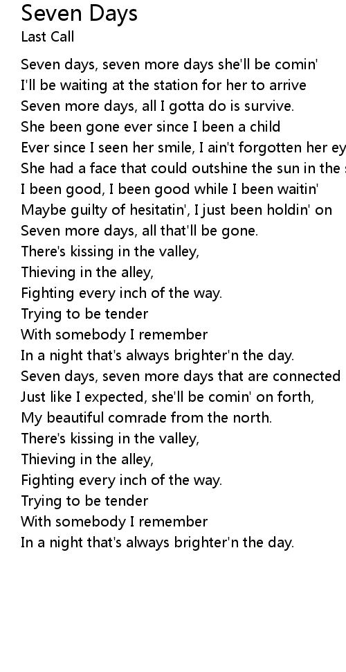 Seven days, seven more days she'll be comin' |