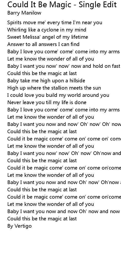 Could it be magic come' come on' come on' come' Oh'come into my eyes |