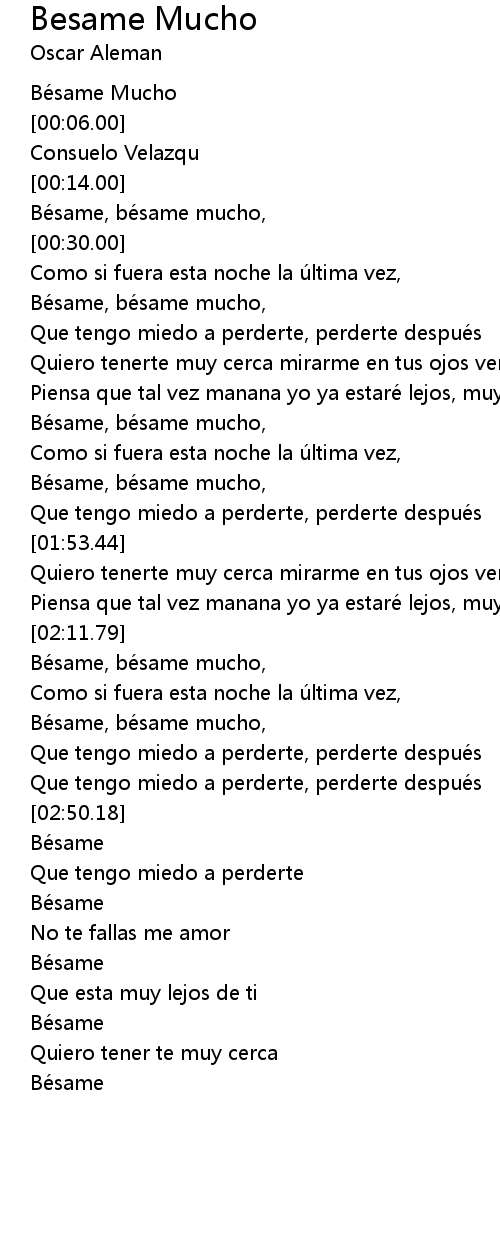 | [00:46.27] | Bésame, bésame mucho, |