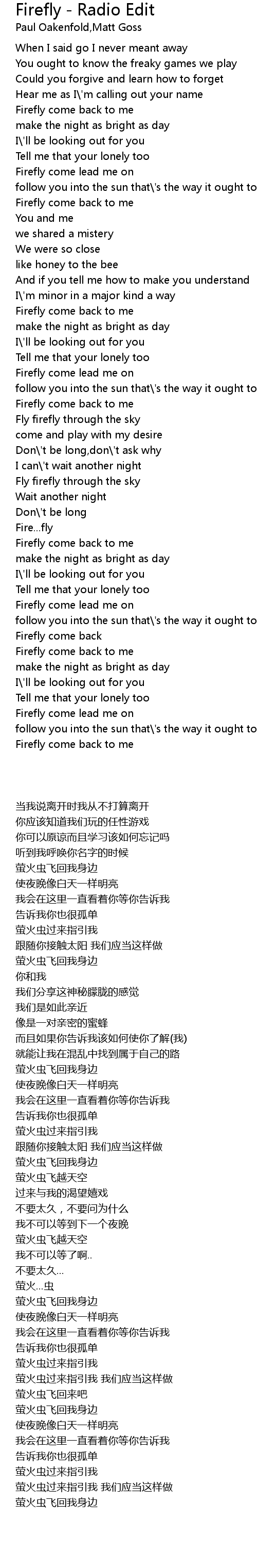 Firefly come back to me |