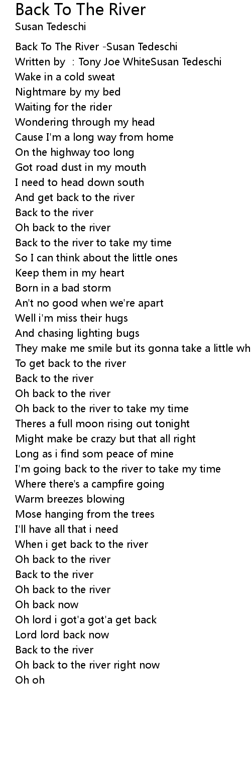 | [00:00.00] | Back To The River Susan Tedeschi |