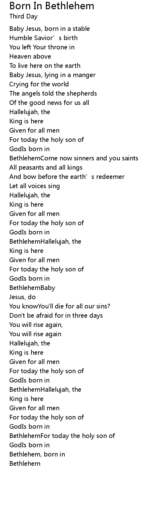 | 歌曲 | Born In Bethlehem |