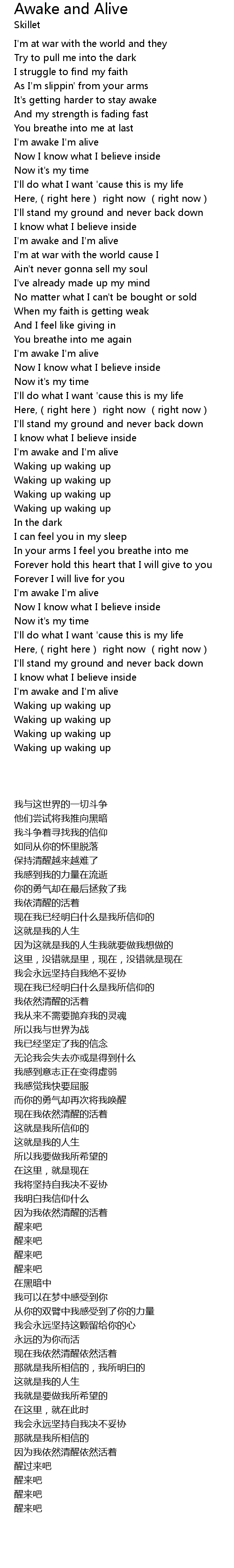 | [02:52.200] | I' m awake I' m alive |