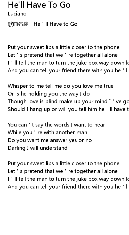 | 歌曲名称:He'll Have to Go | |