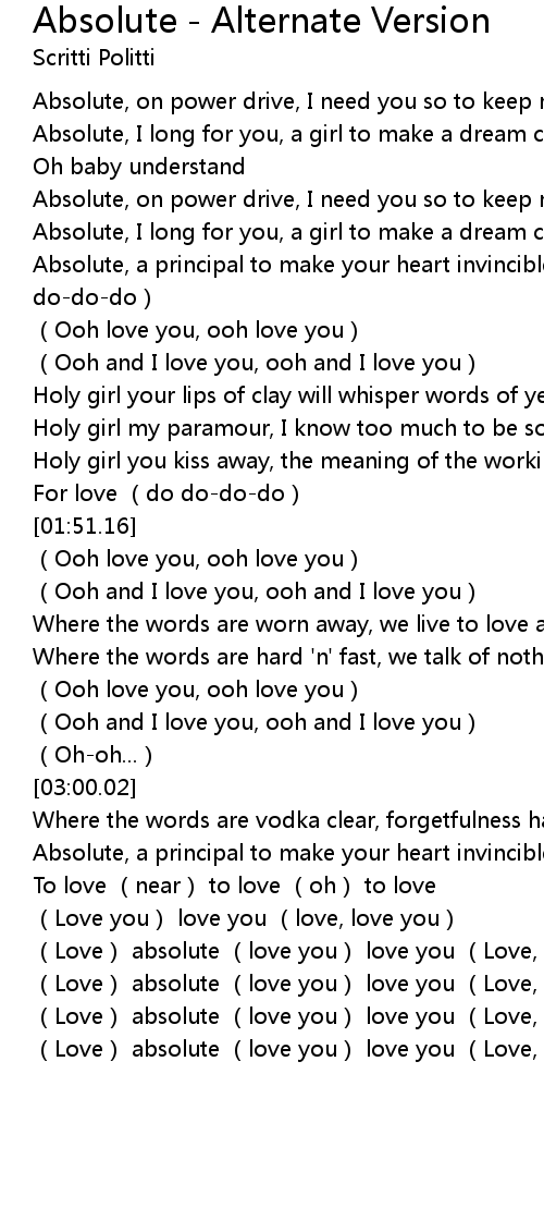 | [03:44.77] | (Love) absolute (love you) love you (Love, love you) |