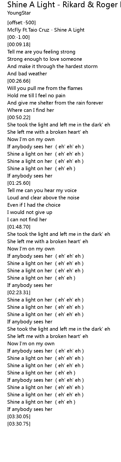 | [02:58.58] | Shine a light on her (eh' eh' eh) |