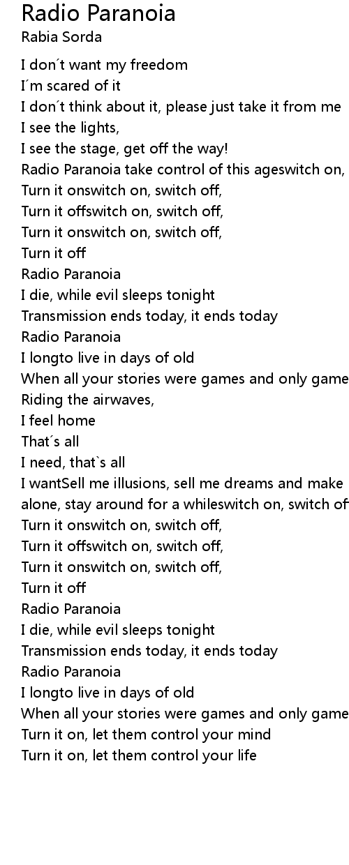 | Radio Paranoia take control of this ageswitch on, switch off, | |