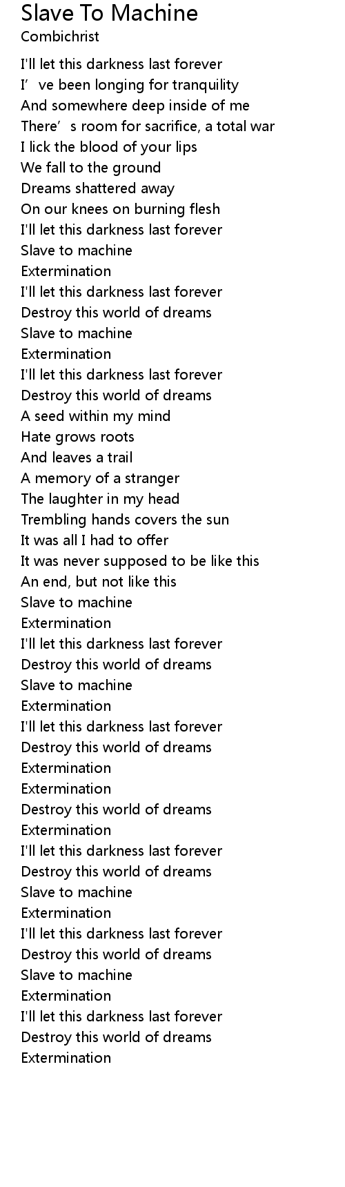 | 歌曲 | Slave To Machine |