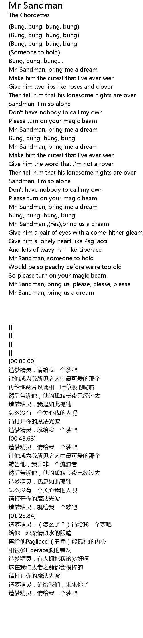 Mr Sandman, bring us, please, please, please |