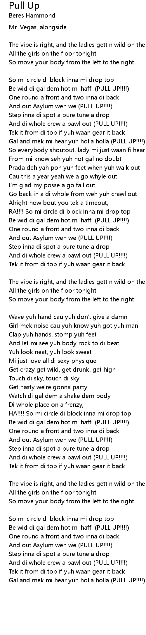 Gal and mek mi hear yuh holla holla (PULL UP!!!!) |