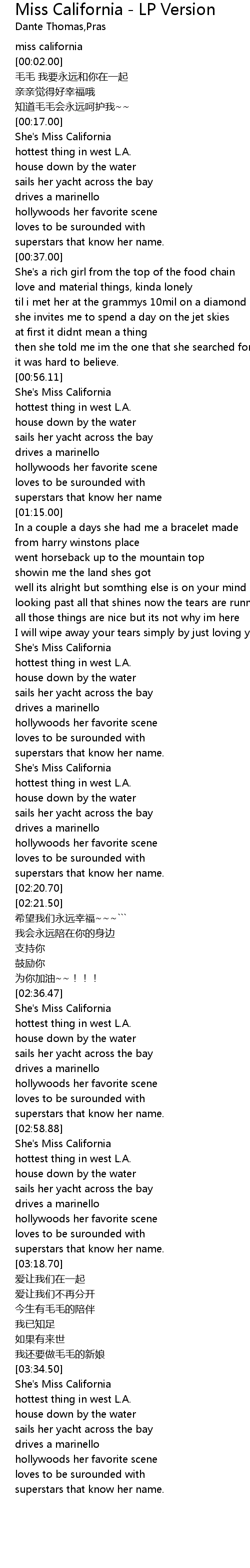 | [02:59.00] | She's Miss California |