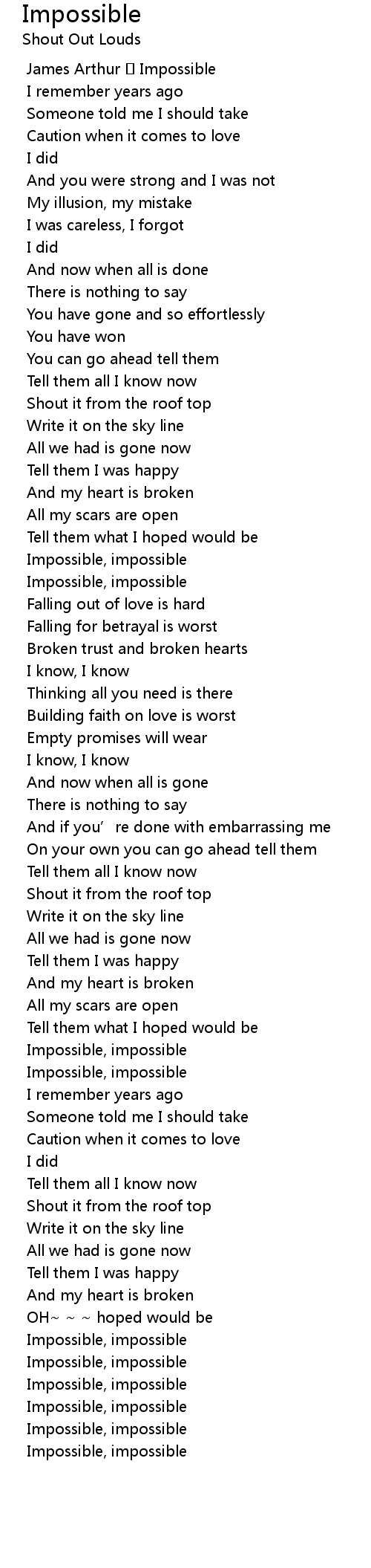 | [00:01.19] | James Arthur Impossible |