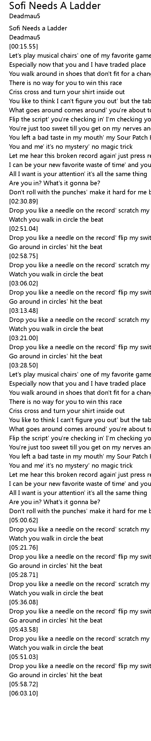 Drop you like a needle on the record' scratch my itch |