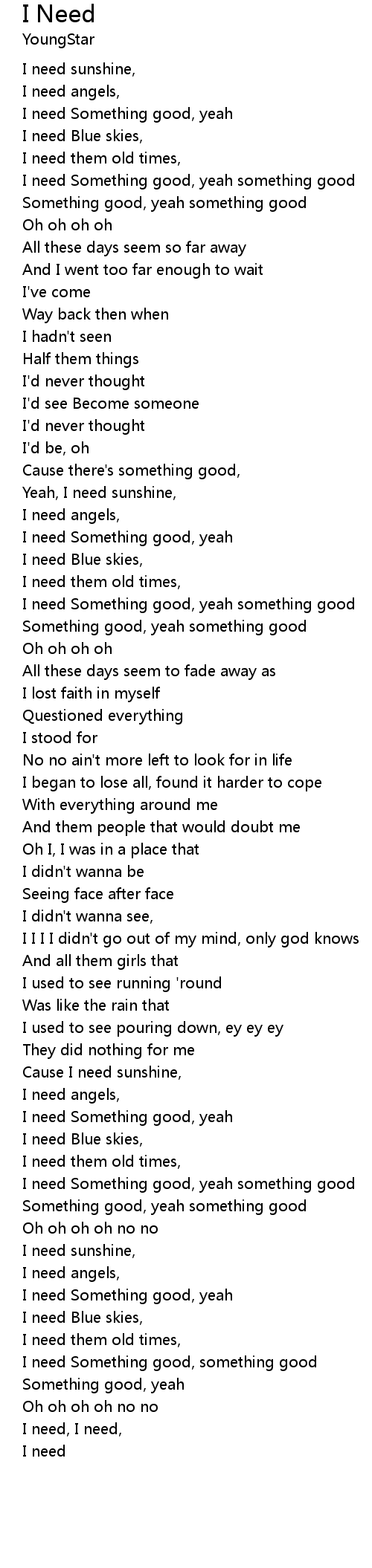 I need, I need,