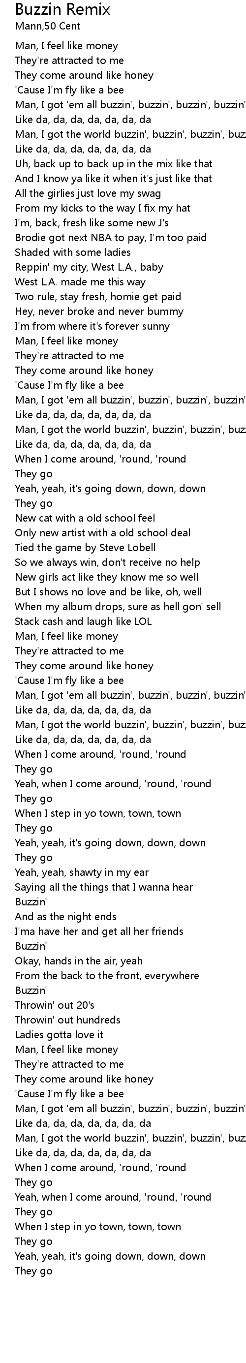 | Man, I got the world buzzin', buzzin', buzzin', buzzin' | |