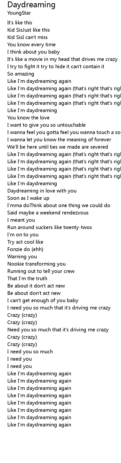 Like I'm daydreaming again (that's right that's right)