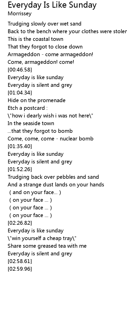 | [01:38.93] | Everyday is like sunday |