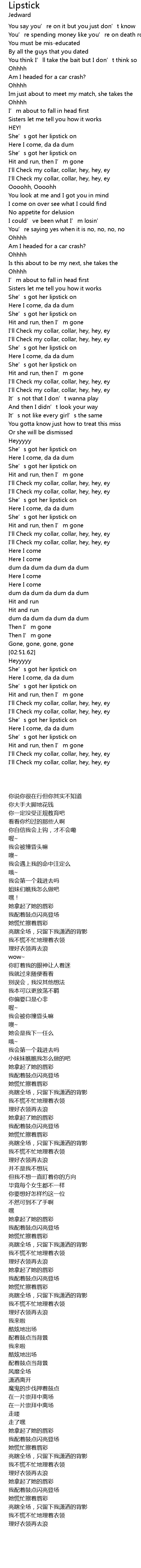 | [02:12.62] | She’s got her lipstick on |