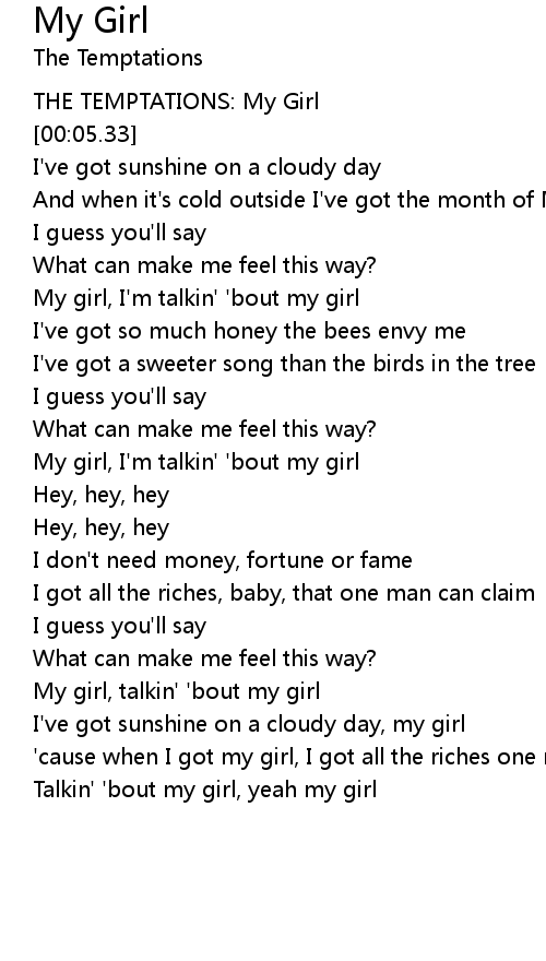 My girl, talkin' 'bout my girl |
