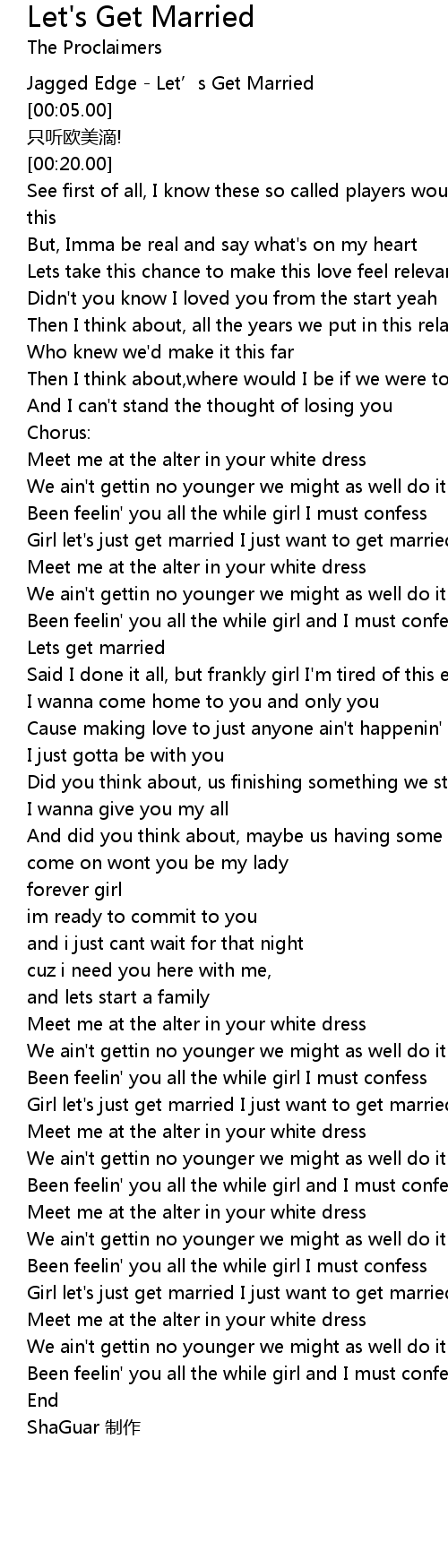 | [01:41.78] | Lets get married |