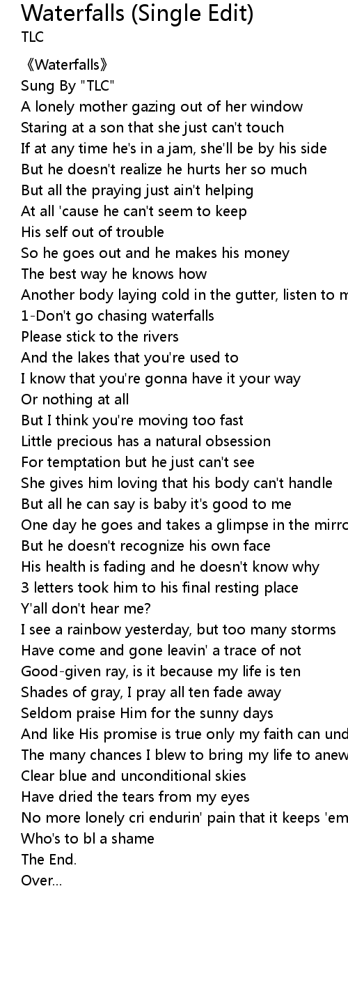 | [01:18.62] | 1Don' t go chasing waterfalls |