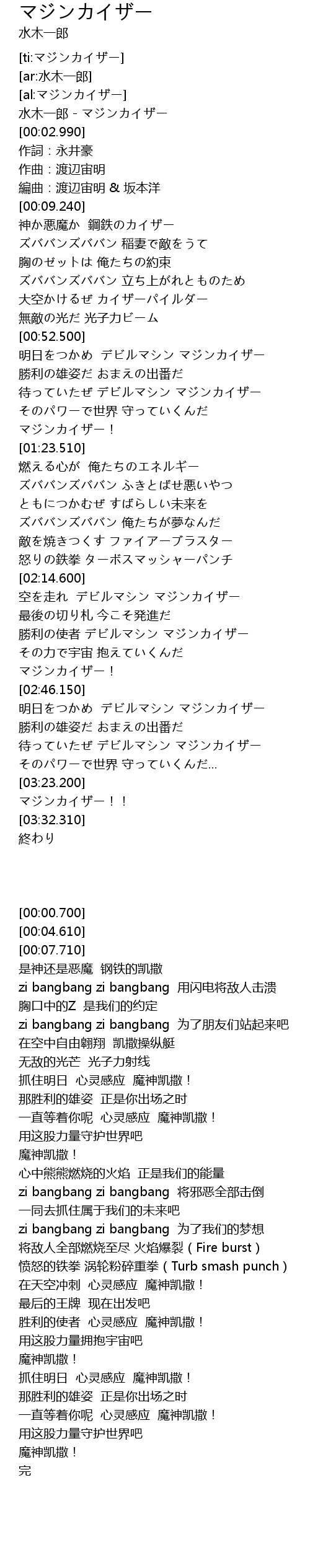 | [00:00.700] | 水木一郎 - マジンカイザー |