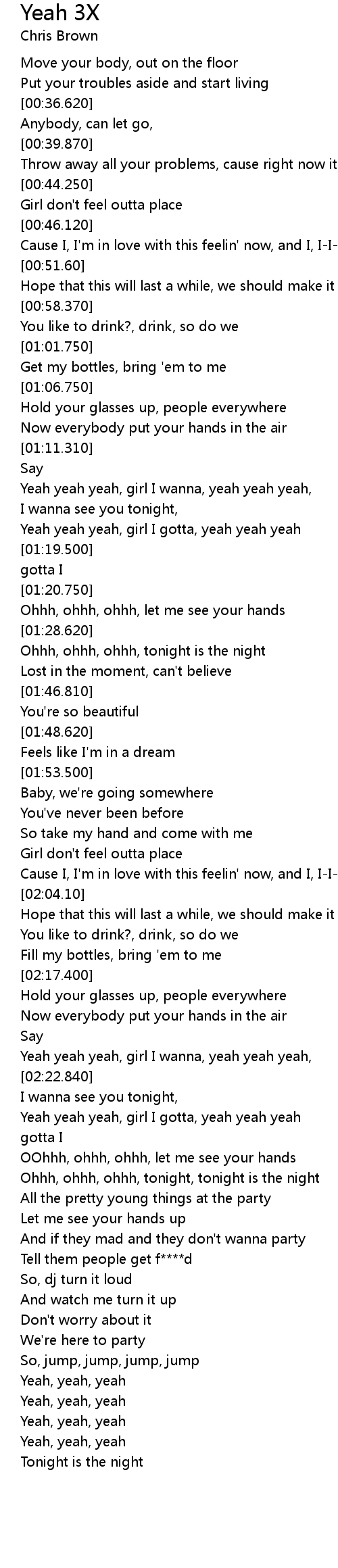 | [01:18.370] | Yeah yeah yeah, girl I gotta, yeah yeah yeah |