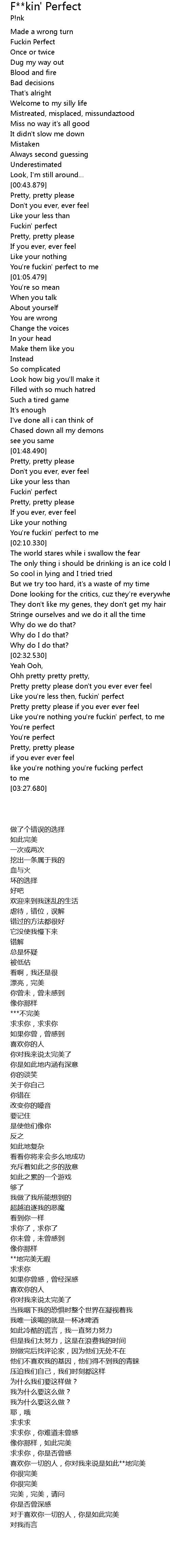 | 歌曲 | F**kin' Perfect |
