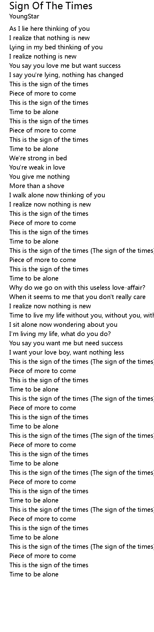 This is the sign of the times (The sign of the times) |