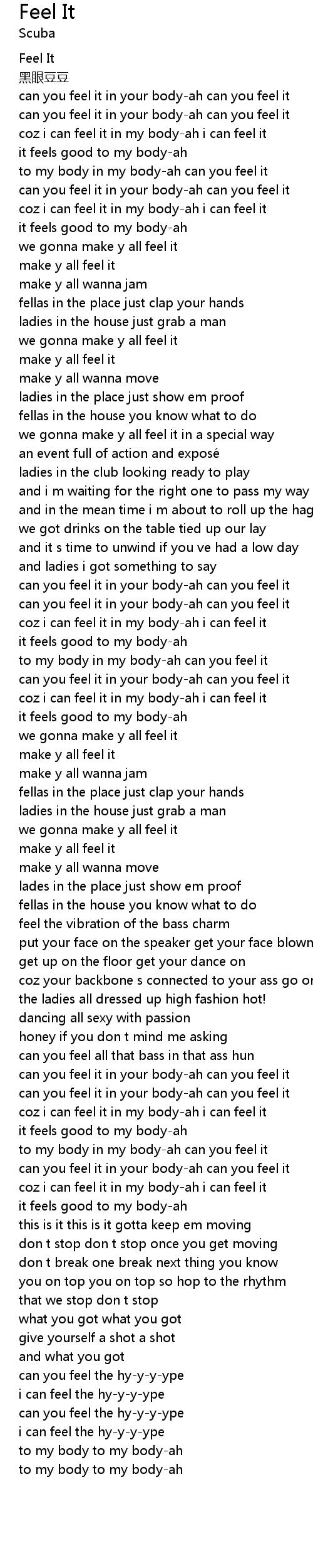 | [00:25.20] | to my body in my bodyah can you feel it |