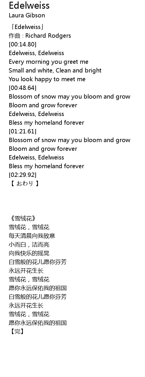 | [01:51.72] | Blossom of snow may you bloom and grow |