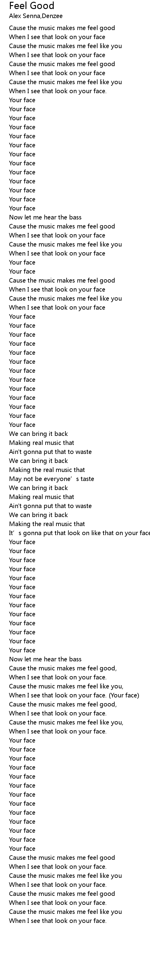 | Cause the music makes me feel good, | |