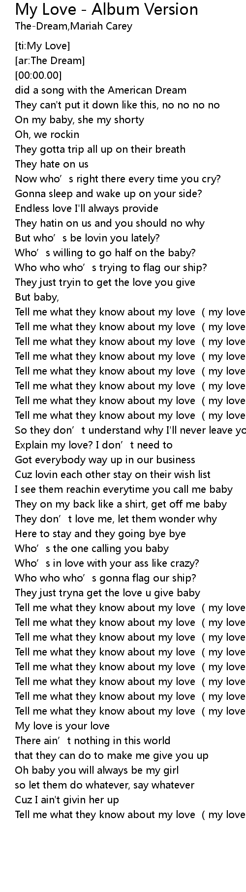 | [00:51.02] | Tell me what they know about my love (my love) |