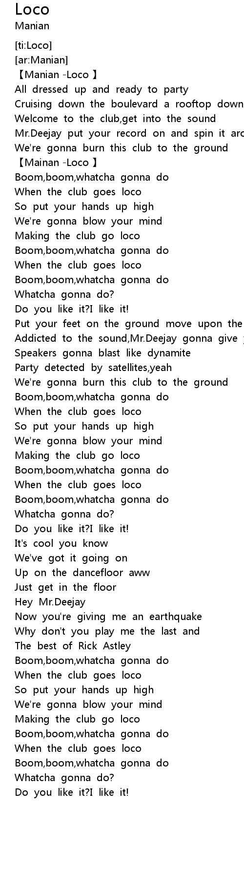 | [00:56.897] | Boom, boom, whatcha gonna do |